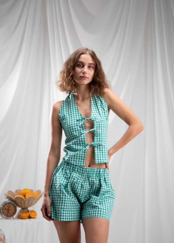 Embrace the cozy country core aesthetic with these stylish and comfortable boxer shorts. Crafted from a medium-sized squared Green pattern, these shorts feature a medium-thickness waistband and two convenient pockets for functionality.